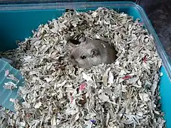 Rongeurs et fouisseurs, on doit veiller à fournir à ces animaux au minimum une cage solide ou un vivarium, garnis d’une litière et de matériaux leur permettant de creuser (bois, carton) et de faire leurs nids, des cachettes (tunnels et maison)[10], du foin, ainsi que du sable ou de la terre à chinchilla pour faire leur toilette et des récipients propres pour l'eau et la nourriture[13],[17].