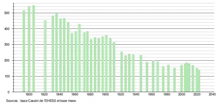 (Sources : Ldh/EHESS/Cassini jusqu'en 1999[13] puis Insee à partir de 2006[23].)