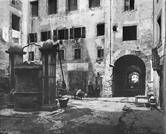 - Ghetto de Rome (1555-1870), partiellement démoli (1888) : Il est créé à la suite de la bulle pontificale Cum nimis absurdum,