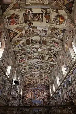 - ↑ (en) Esaak, « What Do Michelangelo's Ignudi Represent? », ThoughtCo (consulté le ).