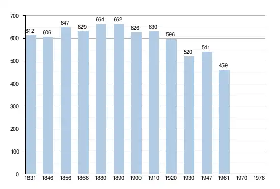 - Sources : INS, Rem. : 1831 jusqu'en 1970 = recensements, 1976 = nombre d'habitants au 31 décembre[2].