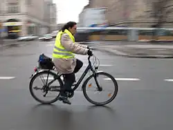 Depuis , le port du gilet est obligatoire pour les conducteur ou passager de cycles circulant hors agglomération, lorsque les conditions de visibilité l'exigent (nuit, brouillard, etc.)[16]