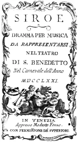 - Siroe (dramma per musica, livret de Pietro Metastasio, 1771, Venise)