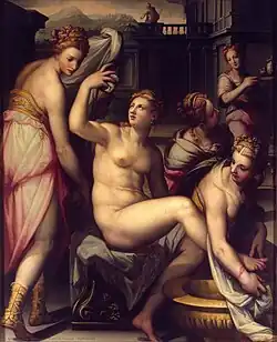 - Adam et Ève, Satyre attaquant deux baigneuses nues, Los Angeles County Museum,