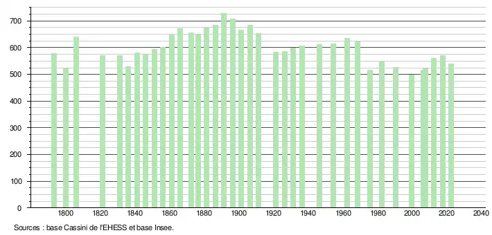 - ↑ Population municipale de référence en vigueur au 1er janvier 2025, millésimée 2022, définie dans les limites territoriales en vigueur au 1er janvier 2024, date de référence statistique : 1er janvier 2022.