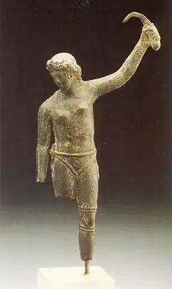 Une statue en bronze tenant une arme à la main exposée au Museum für Kunst und Gewerbein de Hambourg en Allemagne représenterait une gladiatrice[23].