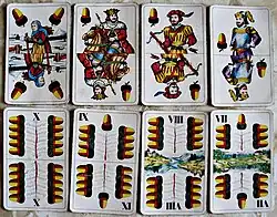 Le gland est la plus forte couleur dans les jeux de Skat, de Doppelkopf et de Schafkopf (de), et la plus faible à la Préférence (de).