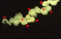 Les cellules les composant sécrètent des boules séricigènes moins nettement délimitées qui fusionnent avant la sortie du