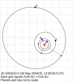 - ↑ (en) Beust, H. et al., « Dynamical evolution of the Gliese 581 planetary system », Astronomy and Astrophysics, vol. 479, no 1, , p. 277–282 (DOI 10.1051/0004-6361:20078794).