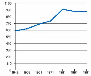- 1 2 (sq) « Évolution de la population 1948-2011 », sur pop-stat.mashke.org (consulté le ).