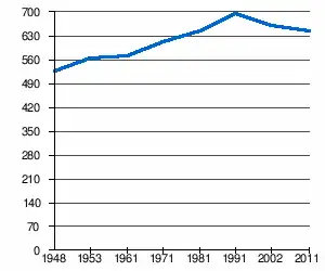 - 1 2 (sr + en) « Livre 20 : Vue d'ensemble comparative de la population en 1948, 1953, 1961, 1971, 1981, 1991, 2002 et 2011, données par localités) » [PDF], pages du recensement de 2011 en Serbie - Institut de statistique de la république de Serbie, (consulté le )
