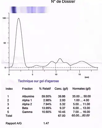 - ↑ (en) Theodore X, O’connell, Horita TJ, Kasravi B, « Understanding and interpreting serum protein electrophoresis », Am Fam Physician, 2005;71:105-112