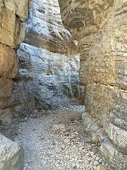 Passage dans les gorges d'Imbros.La longueur et le dénivelé en descente est d'environ 8 km et 650 m, soit environ la moitié des gorges de Samariá voisines. Mais les gorges de Samariá se pratiquent via des éboulis surplombant le lit de la rivière, alors que l'on emprunte plutôt le lit asséché pour les gorges d'Imbros. La promenade reste cependant ardue, et difficile pour des personnes peu habituées à la marche ou sommairement équipées.