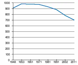 | 907 | 980 | 974 | 970 | 928 | 879 | 780[2] | 698[1] |