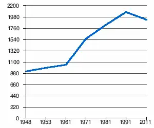 - 1 2 (sq) « Évolution de la population 1948-2011 », sur pop-stat.mashke.org (consulté le ).