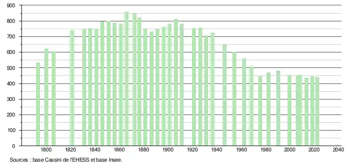 - ↑ Fiches Insee - Populations de référence de la commune pour les années 2006, 2007, 2008, 2009, 2010, 2011, 2012, 2013, 2014, 2015, 2016, 2017, 2018, 2019, 2020, 2021 et 2022.