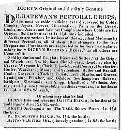 - ↑ (en) Richard Reece, « Bateman’s Pectoral Drops », The Monthly Gazette of Health; or Medical Dietetic, Antiempirical, and General Philosophical Journal, vol. VI, , p. 807.