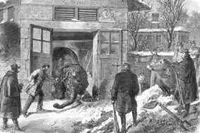 Le , à la suite de l'annonce de la défaite du Bourget survenue la veille, la population parisienne se soulève. L'Hôtel de ville de Paris, siège du gouvernement provisoire, ainsi que la préfecture de police sont occupés par des activistes d'extrême-gauche. La tentative de mise en place d'un Comité de Salut Public par Gustave Flourens avec Auguste Blanqui et Charles Delescluze est tenue en échec par l'emploi de la Garde nationale et de la Garde mobile composée de Bretons. En réaction à cette contestation de sa légitimité et de son autorité, le 1er novembre, le gouvernement de la Défense nationale, qui a failli être renversé[39], se soumet dans la foulée à un plébiscite local le . Ce vote a pour but de faire ratifier la proclamation de fait et non de jure du gouvernement provisoire le , par « le Peuple de Paris »; à défaut de réellement consulter le peuple français, chose qui n'interviendra pas avant 1871 avec les législatives de février et les municipales d'octobre.