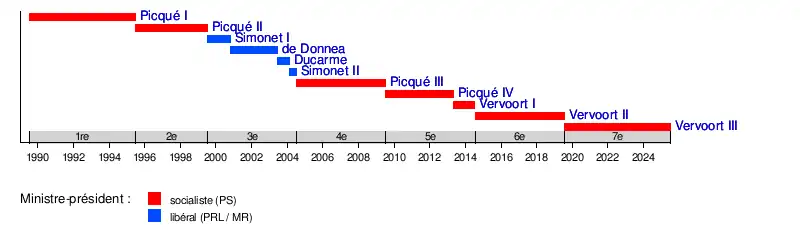 Gouvernement Vervoort IIIGouvernement Vervoort IIGouvernement Vervoort IGouvernement Picqué IVGouvernement Picqué IIIGouvernement Simonet IIGouvernement DucarmeGouvernement de DonneaGouvernement Simonet IGouvernement Picqué IIGouvernement Picqué I