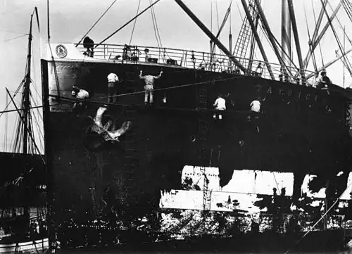Pour maintenir dans l'urgence l'activité du port et pour saper le pouvoir de lutte des grévistes, les entrepreneurs recrutent des briseurs de grève en Allemagne et à l'étranger. Le 7 décembre 1896, près de 2 000 briseurs travaillent dans le port[31]. Mais les entrepreneurs n'atteignent leur but que partiellement : les piquets de grève persuadent certains briseurs d'abandonner leur emploi. La productivité de ces remplaçants est en outre bien plus faible, car ils connaissent à peine les tâches du travail portuaire. Albert Ballin, directeur de la Compagnie transatlantique Hambourg-Amérique (HAPAG), considère que seule la moitié de ces forces d'appoint embauchées par sa compagnie est utilisable[32]. Sur les quais et dans les entrepôts règne un état de chaos. Le nombre de bateaux attendant d'être chargés ou déchargés croît sans cesse. Les conséquences pour les autres branches de l'économie sont substantielles, car ces dernières manquent désormais de matières premières et de pièces détachées, qui s'amoncellent sur les navires, sur les quais et dans les entrepôts. Des réclamations pour retard de livraison arrivent de toute part.