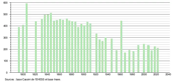 - ↑ Population municipale de référence en vigueur au 1er janvier 2025, millésimée 2022, définie dans les limites territoriales en vigueur au 1er janvier 2024, date de référence statistique : 1er janvier 2022.