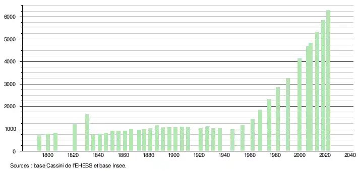 - ↑ Fiches Insee - Populations de référence de la commune pour les années 2006, 2007, 2008, 2009, 2010, 2011, 2012, 2013, 2014, 2015, 2016, 2017, 2018, 2019, 2020, 2021 et 2022.