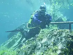 - 1 2 (en) Daily Mail Reporter, « Rest your weary sea legs: Divers explore pristine alpine park that turns into a lake for half the year », Associated Newspapers, (lire en ligne, consulté le ).