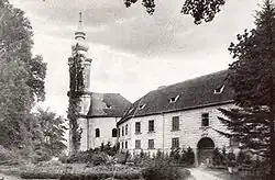 Grad signifie « Château » dans la langue slovène. Le nom provient en effet d'un château dont les premières mentions remontent à 1208. Le château est juché sur une colline dominant la localité. Le château aurait été construit par les templiers avant d'être occupé par des Hongrois au XIIIe siècle.