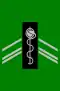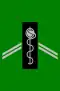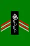 Les couleurs distinctives sont: le rouge pour les officiers médecins, le vert émeraude pour les officiers pharmaciens, le violet pour les officiers dentistes et le bleu outremer pour les officiers vétérinaires. Pour ces officiers, membres du corps technique médical, l'appellation du grade est précédée de la désignation de la spécialité: «médecin capitaine», «pharmacien commandant», «dentiste lieutenant-colonel», «vétérinaire major». Le noir revient aux officiers du corps de support, aux sous-officiers et aux volontaires. Les couleurs distinctives se retrouvent sur l'écusson portant le caducée, entouré de feuilles de chêne et de laurier chez les officiers (pour les officiers pharmaciens: le calice et le serpent).