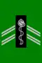 Les insignes de grades se portent aux épaules avec l'uniforme de travail, et sur la poitrine avec l'uniforme de campagne. Sur la tenue de cérémonie, ils sont portés sur les manches, sans le caducée; celui-ci est porté, sur fond de la couleur distinctive des spécialités, sur les revers du col.