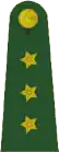 | Mareşal | Orgeneral | Korgeneral | Tümgeneral | Tuğgeneral | Albay | Yarbay | Binbaşı | Yüzbaşı | Üsteğmen | Teğmen | Asteğmen | Öğrenci | |