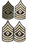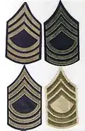 - Même fonction que le sergeant major of the Army, son insigne ressemble fort à celui du chief master petty officer of the Navy de l'US Navy, seul le blason entre l'arc et le chevron les diffère.