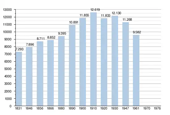 - Sources : INS, Rem. : 1831 jusqu'en 1970 = recensements, 1976 = nombre d'habitants au 31 décembre[12].