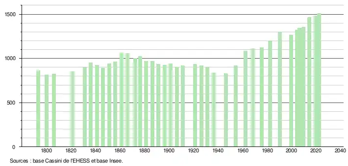 - ↑ Fiches Insee - Populations de référence de la commune pour les années 2006, 2007, 2008, 2009, 2010, 2011, 2012, 2013, 2014, 2015, 2016, 2017, 2018, 2019, 2020, 2021 et 2022.