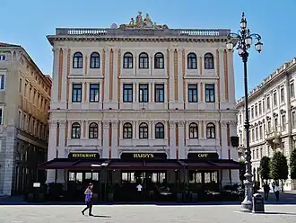 En 1727, à la place de l'Hospitium Magnum et de l'Osteria del Dazio adjacente, la municipalité de Trieste fait construire l'Osteria Grande, qui moins de 40 ans plus tard, en 1765, est restaurée et agrandie pour pouvoir accueillir des voyageurs illustres, prenant le nom de Locanda Grande. Parmi les personnalités ayant séjourné dans la nouvelle auberge figurent l'amiral Horatio Nelson, Giacomo Casanova, Carlo Goldoni, l'écrivain romantique français François-René de Chateaubriand, les empereurs Joseph II et Léopold II, Joachim Murat et le futur roi de Suède et de Norvège Charles XIV Jean[2],[3],[4],[5].