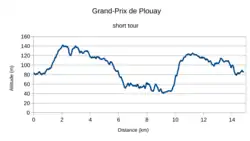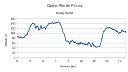 Le parcours est modifié par rapport aux années précédentes. Un long tour de 16,7 km est parcouru six fois. Il comporte la côte de Moulin, la côte du Minojenn de Calvaire enchaîné avec celle de Ty Marrec. Les deux derniers tours sont similaires à ceux des années précédentes avec une longueur de 13,9 km, avec la côte du Bois de Kerlucas en sus[1].