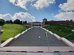 Le grand escalier de Tchkalov (russe : Чкаловская лестница) est un escalier monumental situé dans le centre de Nijni Novgorod, reliant la place de Minine et Pojarski, le quai supérieur de la Volga et le quai inférieur de la Volga. Il a été construit par les architectes Alexandre Iacovleff, Lev Roudnev et Vladimir Munts. C'est le plus long escalier de Russie[1]. L'escalier part du monument de Tchkalov, près de la tour Saint-Georges du Kremlin. Il est construit en forme de huit et se compose de 560 marches, en comptant les deux côtés. Le nombre de marches de bas en haut est de 442 à droite. Aux intersections des pentes latérales, il y a deux plates-formes d'observation. Au bas de l'escalier se trouve un monument au bateau Héros, situé sur le talus de la Basse-Volga.