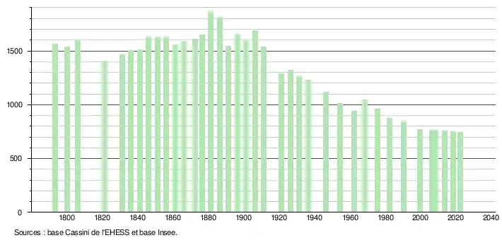 - ↑ Fiches Insee - Populations de référence de la commune pour les années 2006, 2007, 2008, 2009, 2010, 2011, 2012, 2013, 2014, 2015, 2016, 2017, 2018, 2019, 2020, 2021 et 2022.