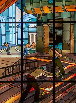 - ↑ « ensemble de 27 verrières : le Travail dans la sidérurgie Lorraine », notice no PM54000496, sur la plateforme ouverte du patrimoine, base Palissy, ministère français de la Culture.