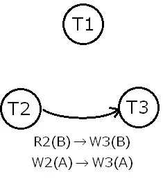 - Pour chaque cas dans S où T j exécute un read_item (X) après que T i exécute un write_item (X), créez une arête (T i → T j ) dans le graphe de priorité. Cela ne se produit nulle part dans l'exemple ci-dessus, car il n'y a pas de lecture après écriture.