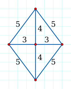 Un graphe diophantien d'Erdős, tirant son nom de Paul Erdős, est un graphe complet dont les sommets sont situés aux nœuds du réseau carré , appelé ici plan diophantien[1], tel que les distances entre deux sommets quelconques sont entières, et tel que les autres points du réseau sont situés à une distance non entière d'au moins un sommet du graphe.