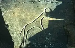 D'autres gravures représentent un bovidé, un rhinocéros, une antilope, un fauve, une autruche.