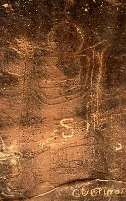 - ↑ Paul Huard et Léone Allard-Huard, Nouvelles gravures rupestres du Sud-Oranais, dans Bulletin de la Société préhistorique française, tome 77, n°10-12, 1980. Études et Travaux. pp. 442-462.