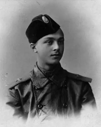 Au déclenchement de la Première Guerre mondiale il s'enrôle dans les cuirassiers le . Il demande ensuite son transfert au service de l'aviation et est transféré à l'école de pilotage de Gatchina le . En , il commence sa formation aéronautique par un cours sur les moteurs à combustion interne[5].