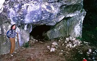 - ↑ Pour le nom « Grotte de la Roche », voir par exemple :