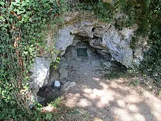 - ↑ A quelque 70 m de l'entrée de la grotte se trouve un passage très étroit. Quand l'entrée a été murée (comme le montre ces photos), il a été décidé que la porte d'accès à la grotte ne serait pas plus grande que ce passage étroit ; ainsi les personnes ne pouvant passer l'étroiture ne pourraient pas non plus passer la porte d'entrée, leur évitant ainsi de se retrouver coincées dans la grotte à 70 m de l'entrée. Cette information a été fournie par Nadine, guide de la Grande grotte en 2018.