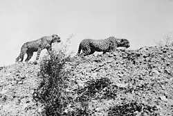 Le guépard sud-africain était l'un des animaux les plus répandus. Ces deux guépards ont été photographiés au sud-ouest de l'Afrique du Sud entre 1906 et 1918.