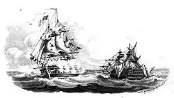 En janvier 1813, la frégate américaine USS Essex, sous le commandement du capitaine David Porter, partit pour l’océan Pacifique avec l’intention d’y harceler les navires britanniques. En effet, de nombreux baleiniers britanniques disposaient de lettres de marque qui les autorisaient à attaquer les baleiniers américains, ce qui avait quasiment détruit cette industrie. Afin de mettre fin à cette pratique, l’Essex poursuivit les baleiniers britanniques et leur infligea des dégâts considérables avant de se faire capturer au large de Valparaíso (Chili), le , par la frégate HMS Phoebe et le sloop HMS Cherub[49].