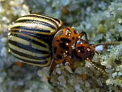Un scientifique britannique, J.B.S. Haldane, a estimé que la Grande-Bretagne et l'Allemagne étaient tous deux vulnérables à une attaque entomologique par le doryphore de la pomme de terre[10]. En 1942, les États-Unis ont expédié 15000 doryphores en Grande-Bretagne pour étudier leur utilisation comme arme biologique[11].