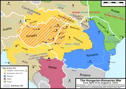 Guerre hungaro-roumaine peut désigner l'un des trois conflits armés ayant opposé la Hongrie et la Roumanie au XXe siècle : le front hungaro-roumain de la Première Guerre mondiale, la guerre contre la République des conseils de Hongrie en 1919 et le front roumain de la Seconde Guerre mondiale. Cet article ne concerne que la guerre menée du 15 avril au 2 août 1919 par la coalition anticommuniste des troupes roumaines, tchécoslovaques, serbes et françaises (Armée d'Orient dans le Banat et Armée du Danube en Transylvanie) épaulées par les conservateurs antibolchéviks hongrois de Gyula Peidl et Miklós Horthy.